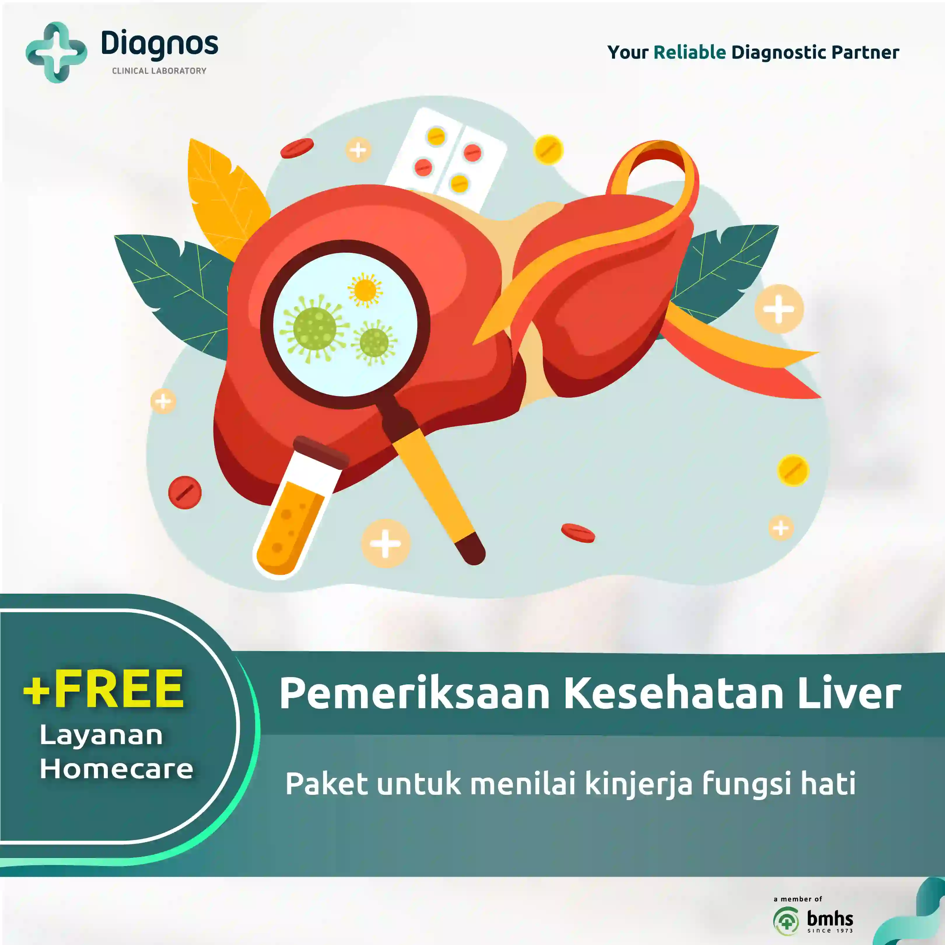 Paket pemeriksaan yang berfokus untuk menilai fungsi hati anda melalui pemeriksaan laboratorium, yaitu dengan mengukur kadar albumin, protein total serta kadar enzim hati. Pemeriksaan ini juga memeriksa kadar lemak dalam darah sebagai faktor risiko gangguan fungsi hati. Selain itu, dapat mengetahui apakah Anda terinfeksi Hepatitis B atau penyakit hati lainnya. Berpuasa 10-12 jam, hanya diperbolehkan untuk minum air putih Paket Pemeriksaan Diagnos-ing Liver: Hematologi Lengkap SGOT SGPT Albumin Total Protein HDL Kolestrol LDL Kolestrol Triglyserida Kolestrol Total HBsAg Gamma GT