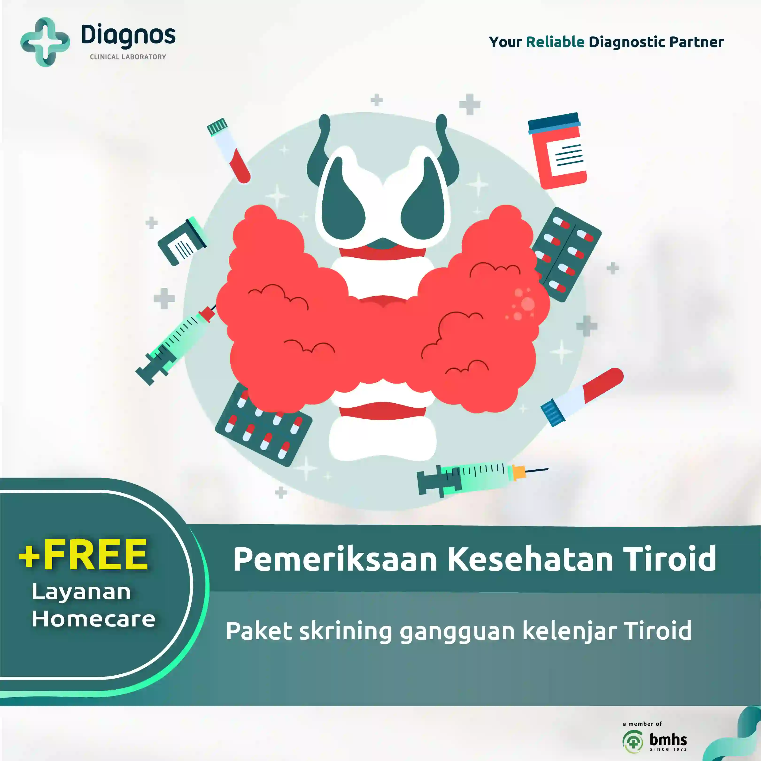 Paket pemeriksaan untuk skrining gangguan pada kelenjar Tiroid dengan pemeriksaan pengecekan hormon T3 (triodothyronine), hormon T4 (tiroksin) dan TSHs (tiroid stimulating hormon) untuk mengevaluasi kinerja kelenjar tiroid. Diagnos-ing Tyroid Terdiri: Free T3 Free T4 TSH